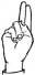 На ћирилици написано ИВА БЕКОЊА састоји се из 9 слова [?]. Исписано ћириличном једноручном азбуком за глувонеме: